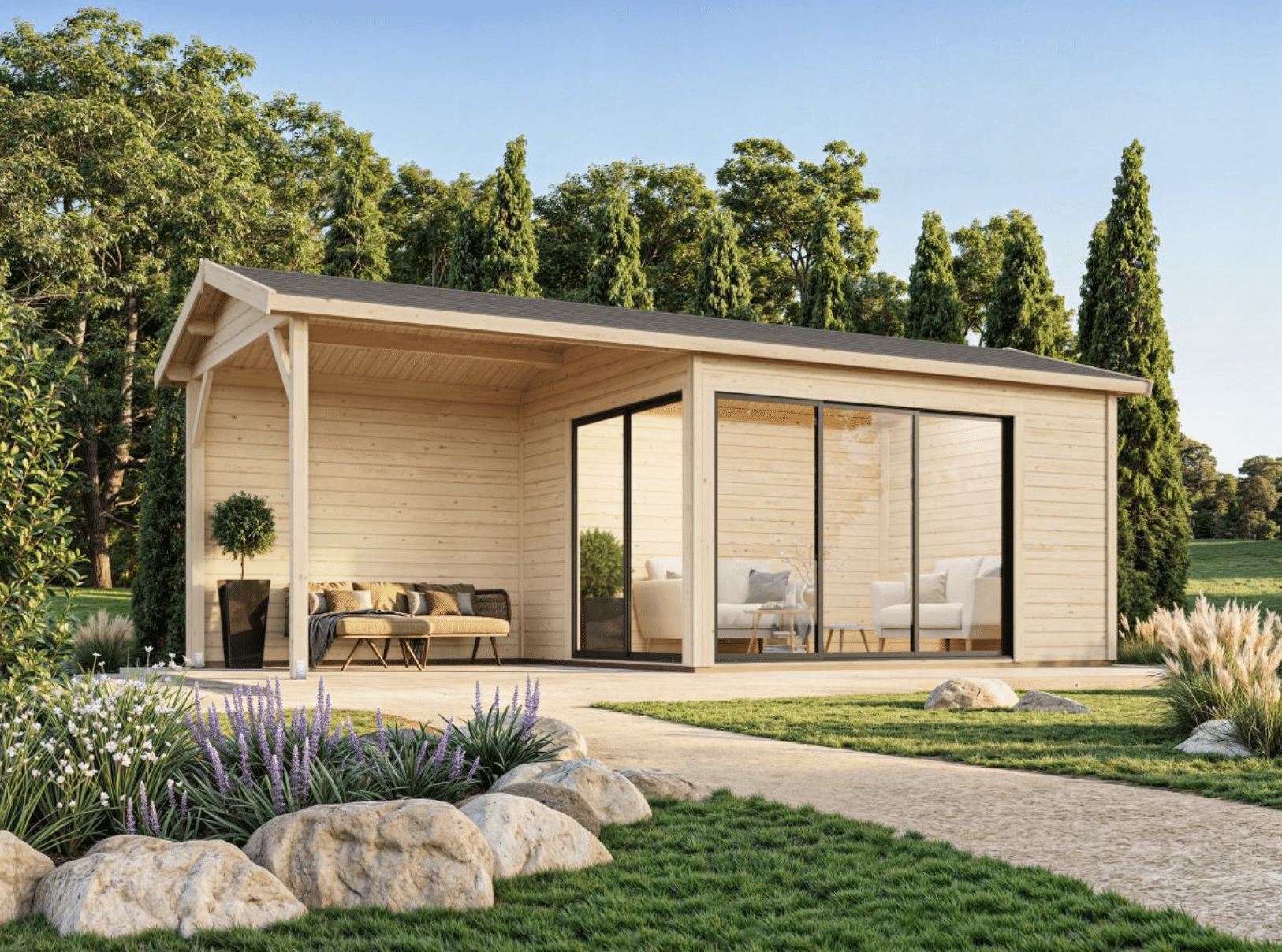 Chalet moderne en bois massif, parfait pour bureau ou espace détente.