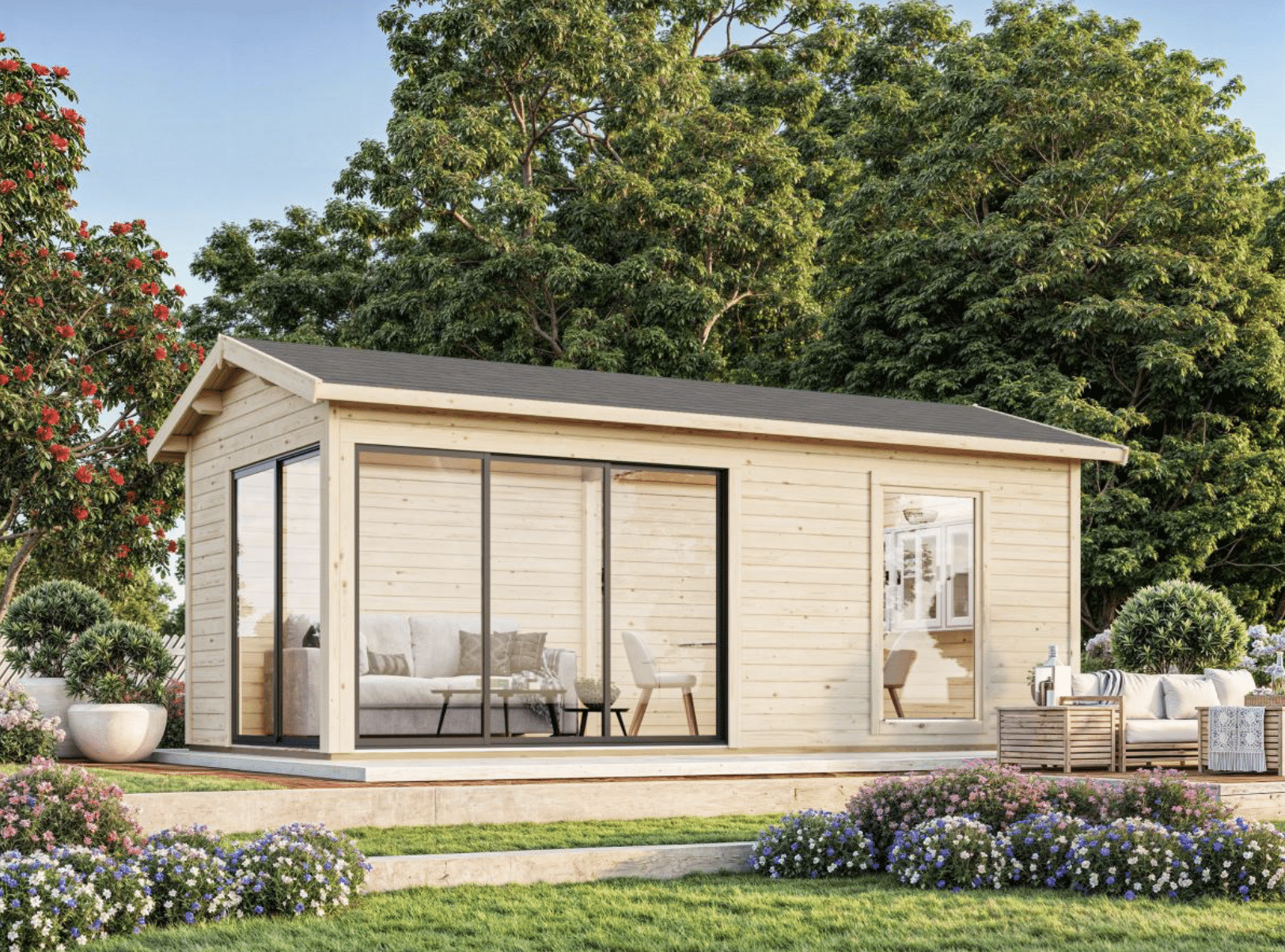 Chalet moderne en bois massif, idéal pour bureau ou espace détente.