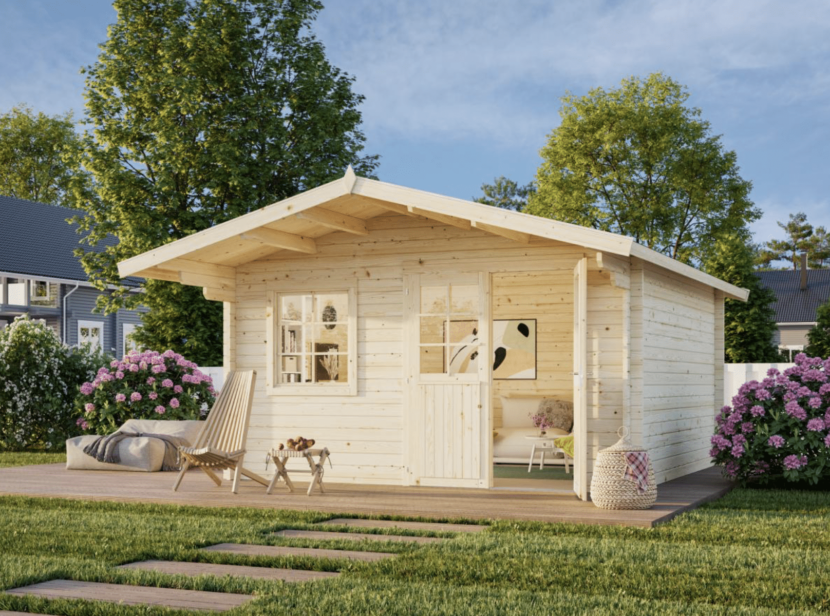 Grand chalet en bois massif, solide et lumineux, idéal pour un atelier, un bureau ou un espace détente.
