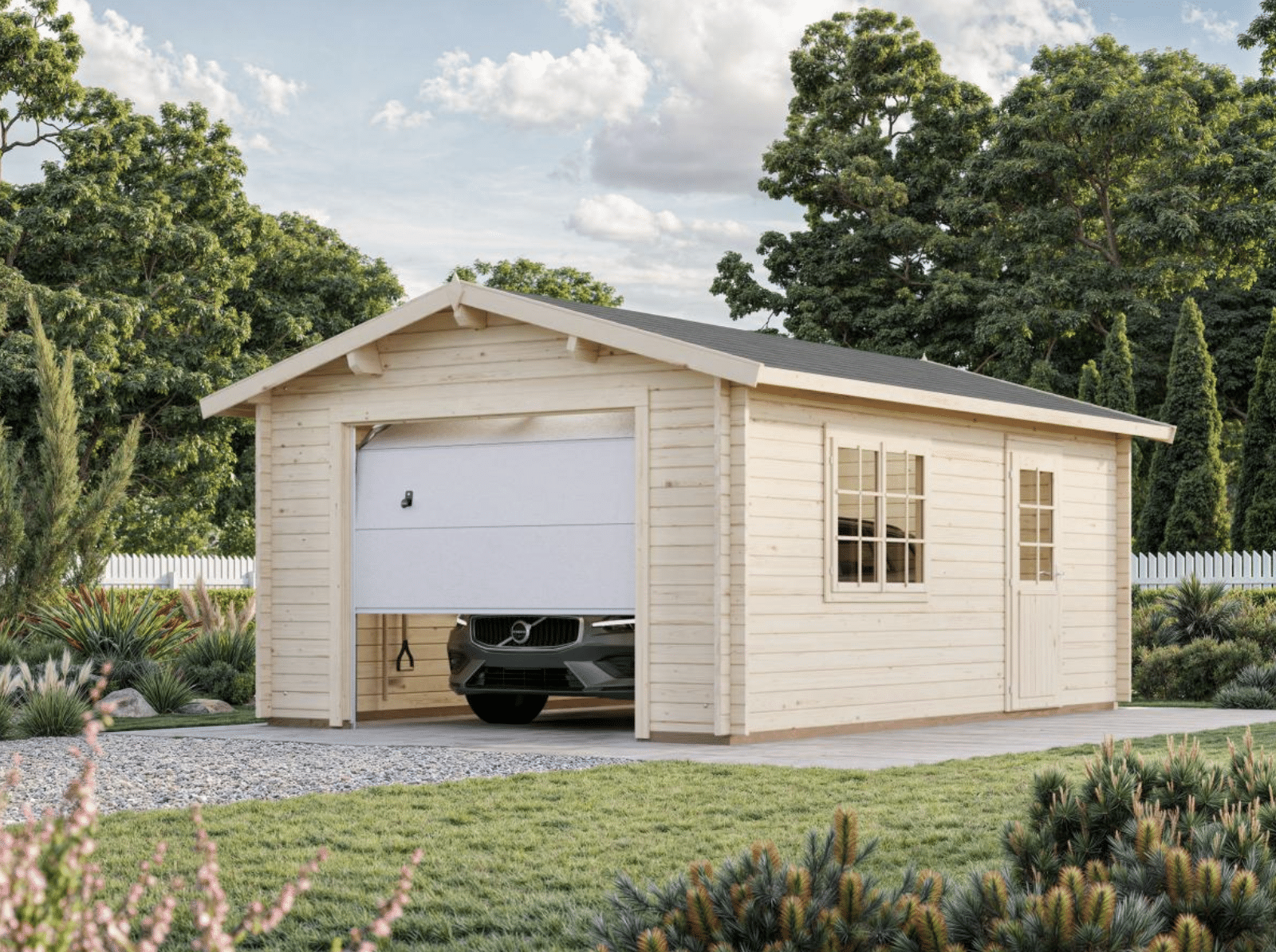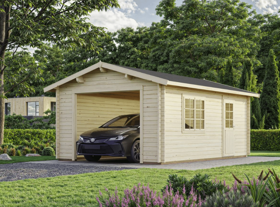 Fabriquée en sapin nordique, la structure du garage est garantie 5 ans, vous assurant une durabilité à long terme avec un montage simple par emboîtement.